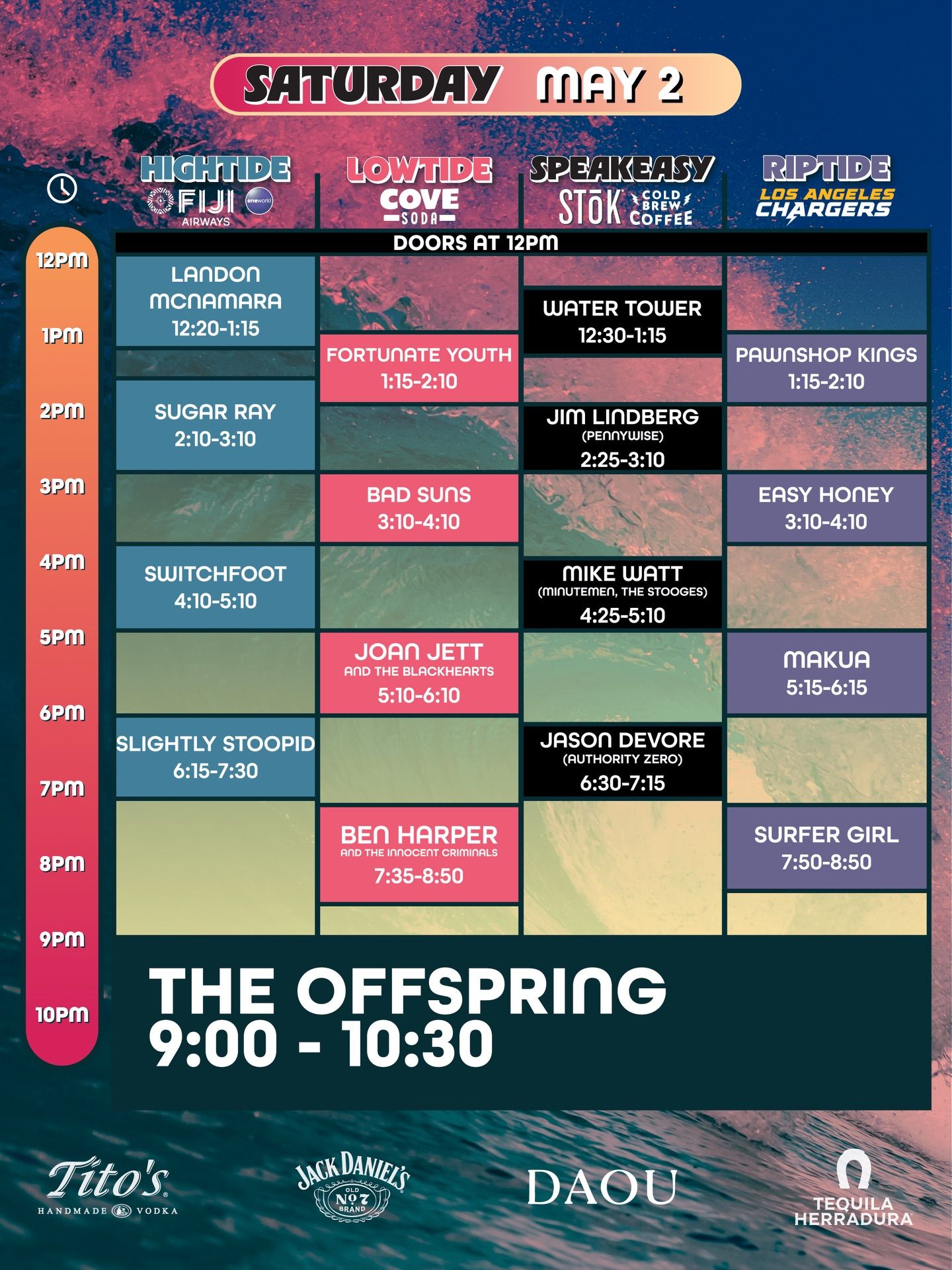 The newly released schedule reveals a carefully curated flow across multiple stages, with acts like Grouplove, Peach Pit, Flipturn and Fitz and The Tantrums filling out the afternoons, while sunset and evening slots are reserved for the festival’s biggest drawcards. Elsewhere, surf and reggae-infused favourites including Slightly Stoopid, Fortunate Youth and Ben Harper & The Innocent Criminals add to the laid-back beachside atmosphere.