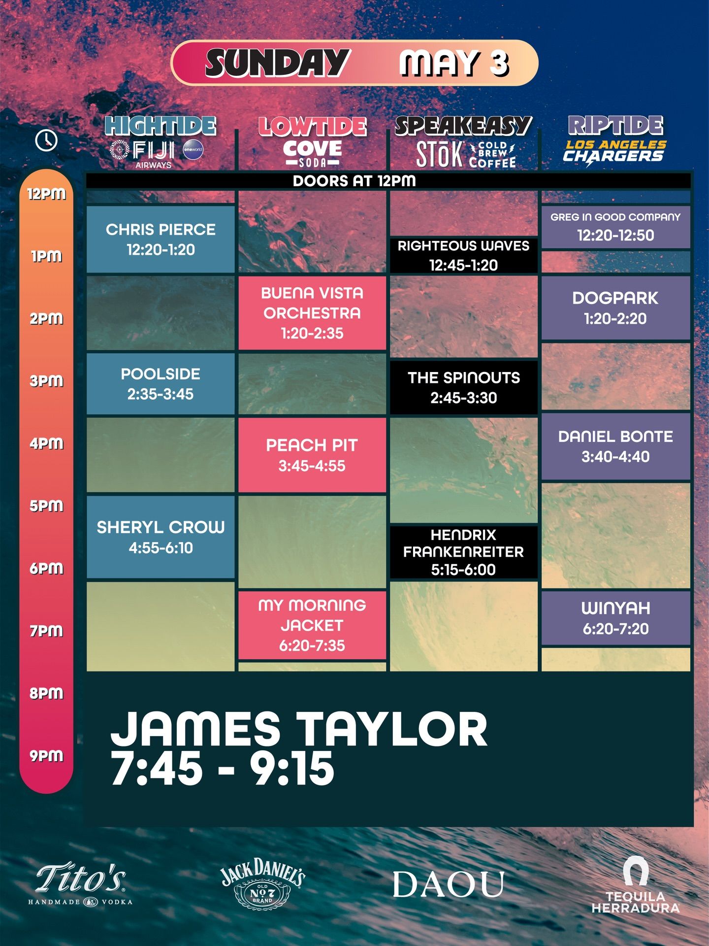 Taking place from 1st - 3rd May, 2026, the coastal California festival returns with a diverse mix of rock, indie, pop and surf-inspired sounds. Headline moments across the weekend include performances from Duran Duran, The Chainsmokers and The Offspring, alongside standout sets from James Taylor & His All-Star Band, My Morning Jacket and Sheryl Crow.