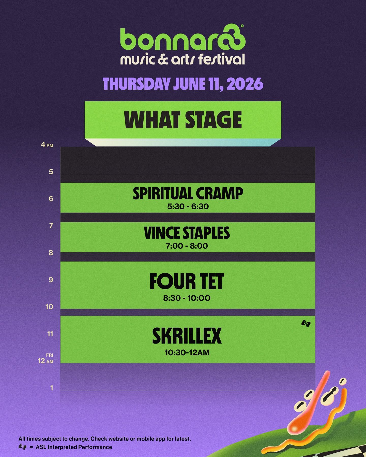 Bonnaroo Music & Arts Festival has officially revealed its full set times for 2026, giving fans a detailed look at how the iconic Tennessee event will unfold across four packed days this June.