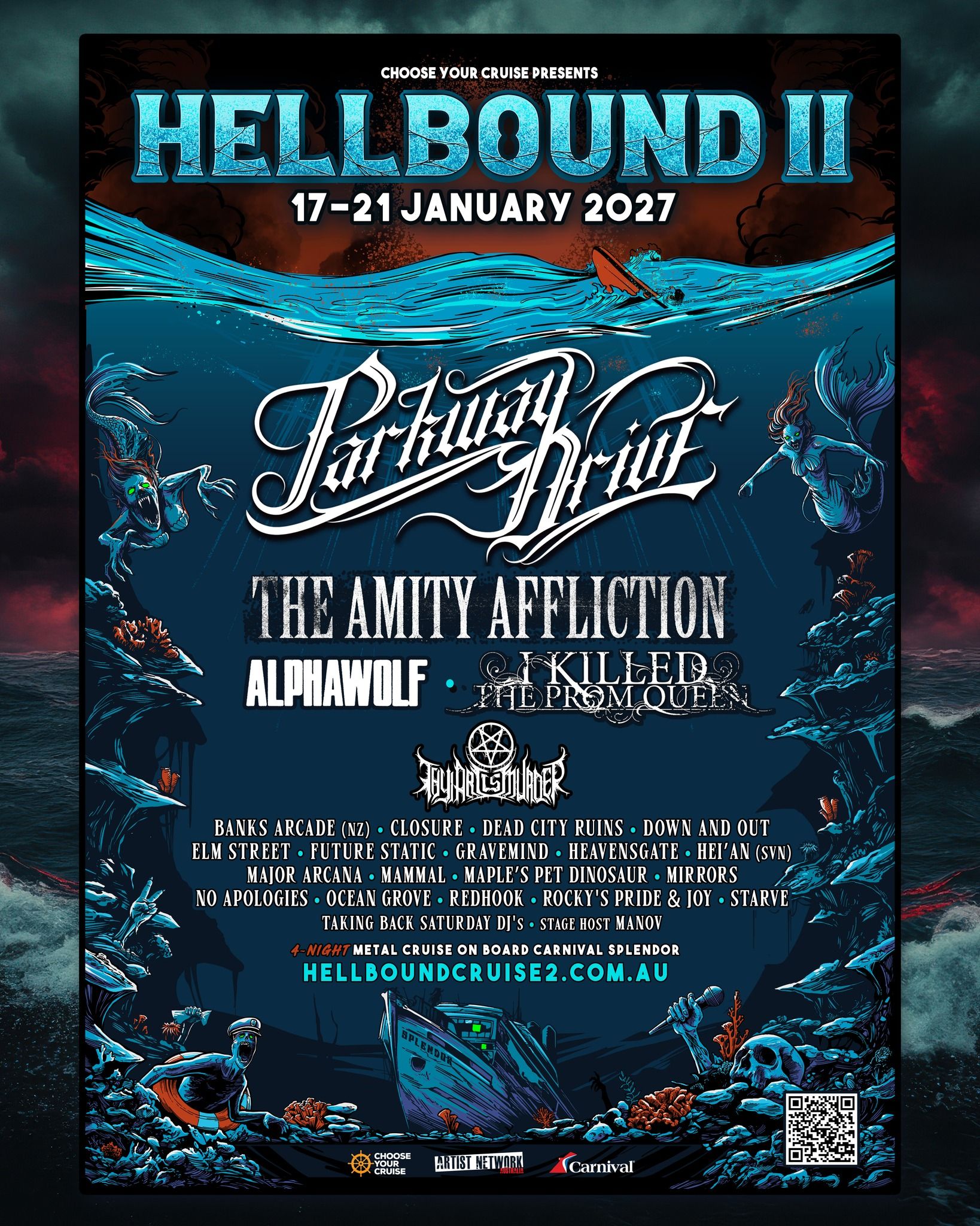 Headlining the four-night metal cruise are Byron Bay icons Parkway Drive, returning after overwhelming demand for the inaugural event. They are joined by an elite lineup of heavy music favourites including The Amity Affliction, Alpha Wolf, I Killed The Prom Queen and Thy Art Is Murder, cementing Hellbound II as one of the most ambitious heavy-focused cruise lineups ever assembled in Australia.