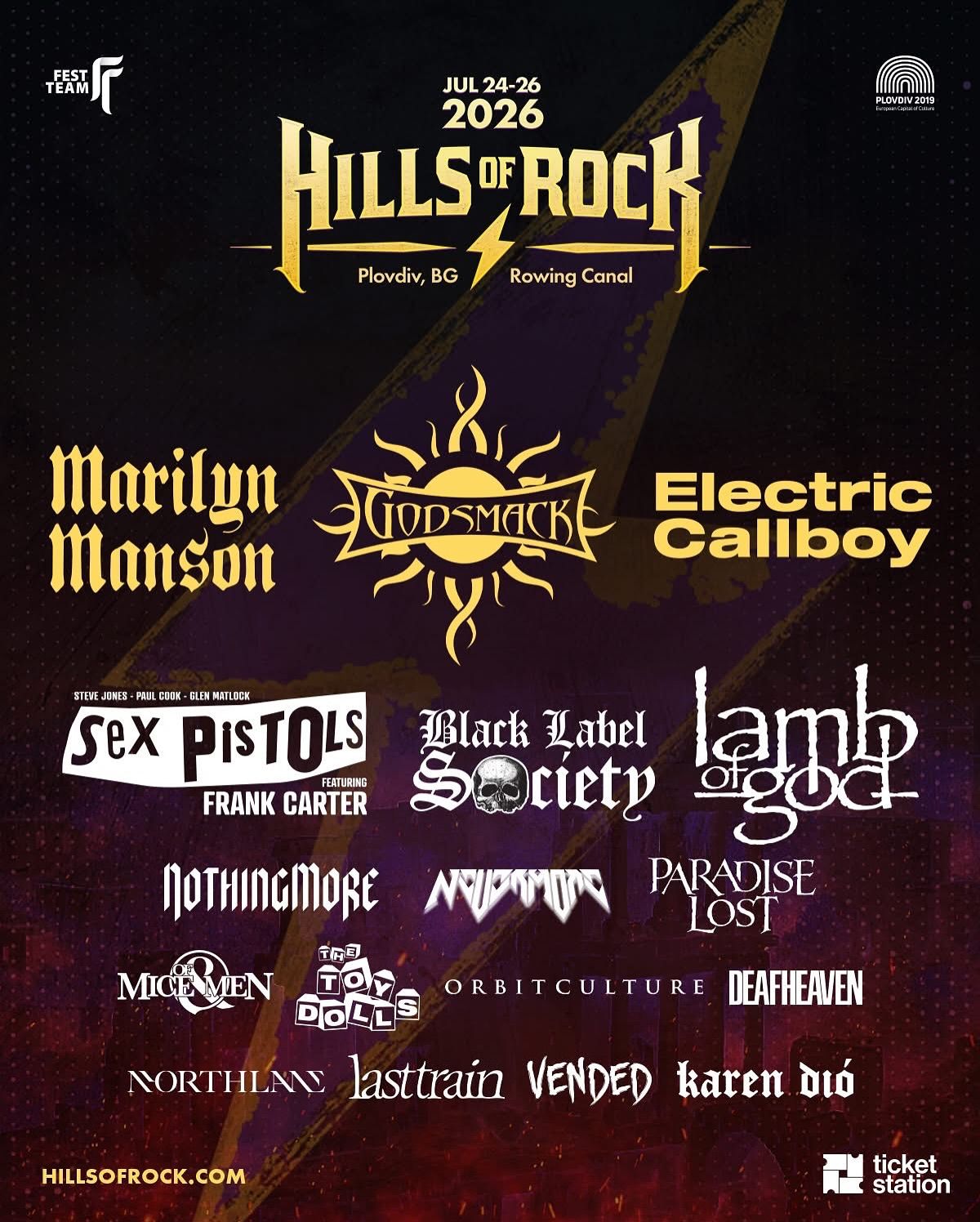 The 2026 lineup showcases the breadth of heavy music, led by the theatrical intensity of Marilyn Manson, the arena-sized power of Godsmack and the modern metal energy of Electric Callboy. Fans can also expect the uncompromising force of Lamb of God, gothic legends Paradise Lost, blackened intensity from Deafheaven and rising names including Northlane, Vended and Orbit Culture, with more announcements still to come.