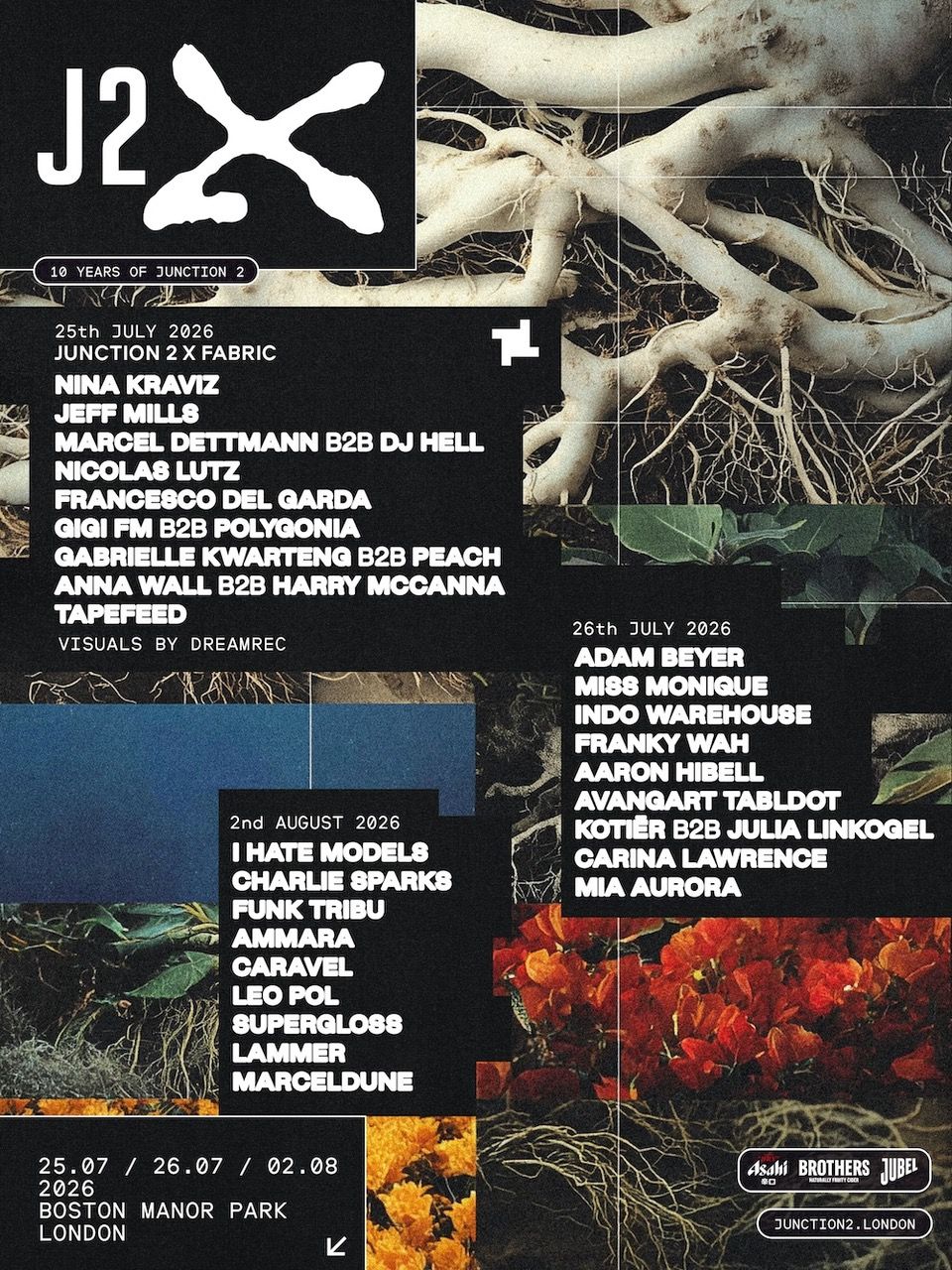 Junction 2 has completed its full lineup for 2026, marking a major milestone as the London festival celebrates its 10th anniversary with J2 X. Returning to Boston Manor Park across 25th - 26th July and 2nd August, 2026, the event continues its evolution with a refined two-stage format centred around The Bridge and The Woods.