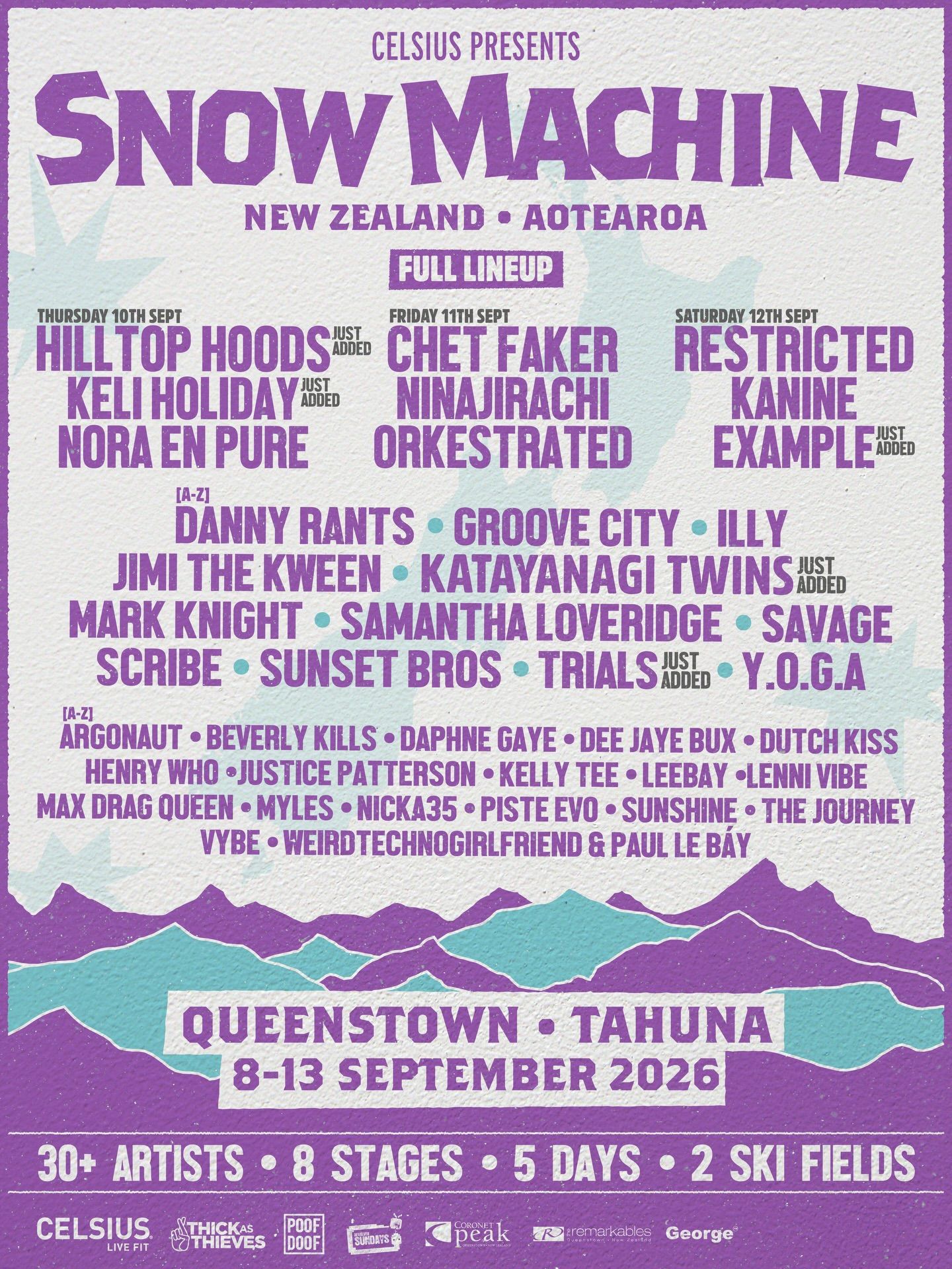 Snow Machine has revealed its second lineup drop for 2026, adding five new artists to its Queenstown return from 8th - 13th September, 2026. The alpine festival continues to build momentum with a focused update, as demand remains high following the sell out of first release packages.