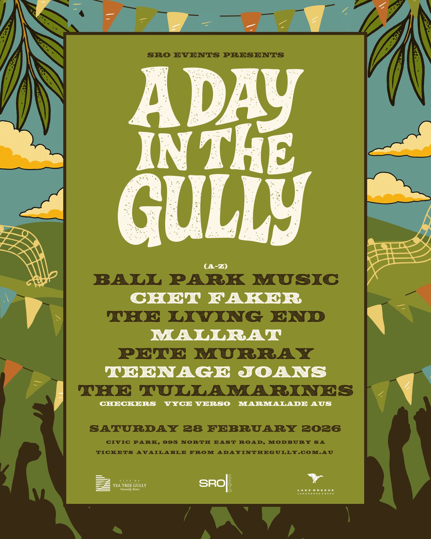 The inaugural lineup brings together some of Australia’s most beloved live acts, including Ball Park Music, Chet Faker, Pete Murray, Mallrat, The Living End, Teenage Joans, and The Tullamarines. Delivered by the team at SRO Events, the one-day event aims to celebrate community and creativity through a diverse mix of music, food, and culture in the City of Tea Tree Gully.