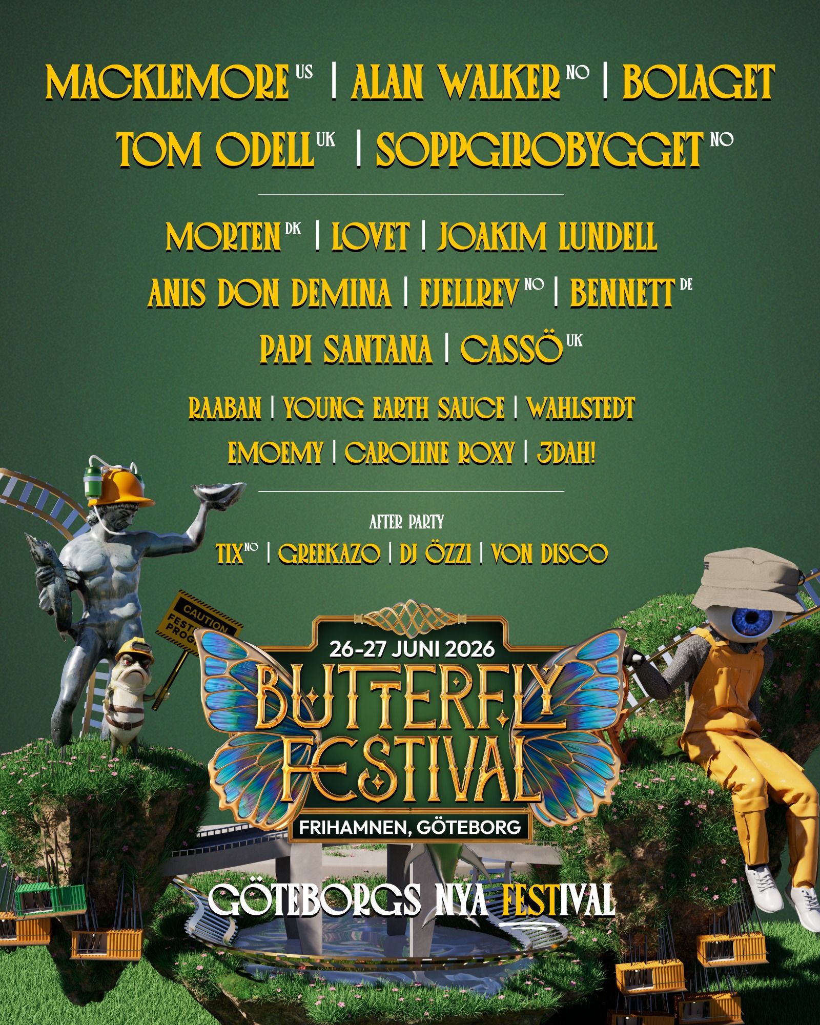 Joining previously announced names Macklemore, Bolaget, Soppgirobygget and Lovet, the latest wave is led by global hitmaker Alan Walker and British singer-songwriter Tom Odell. Danish dance heavyweight Morten and Swedish personality Joakim Lundell further strengthen the bill, alongside Anis Don Demina, Fjellrev and Bennett. The diverse selection reflects Butterfly Festival’s ambition to bridge pop, electronic and contemporary Scandinavian sounds across its two days.