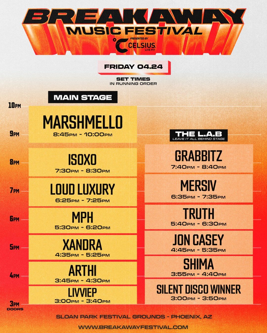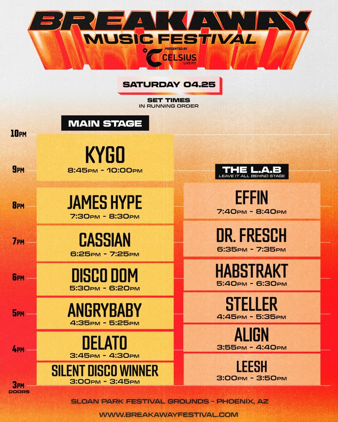 With set times now confirmed, Breakaway Arizona 2026 is primed for a seamless festival experience, balancing big-room headliners with rising talent across both days. From sun-soaked afternoon slots to late-night closers, the Phoenix edition continues to deliver a well-curated, high-impact weekend for dance music fans.