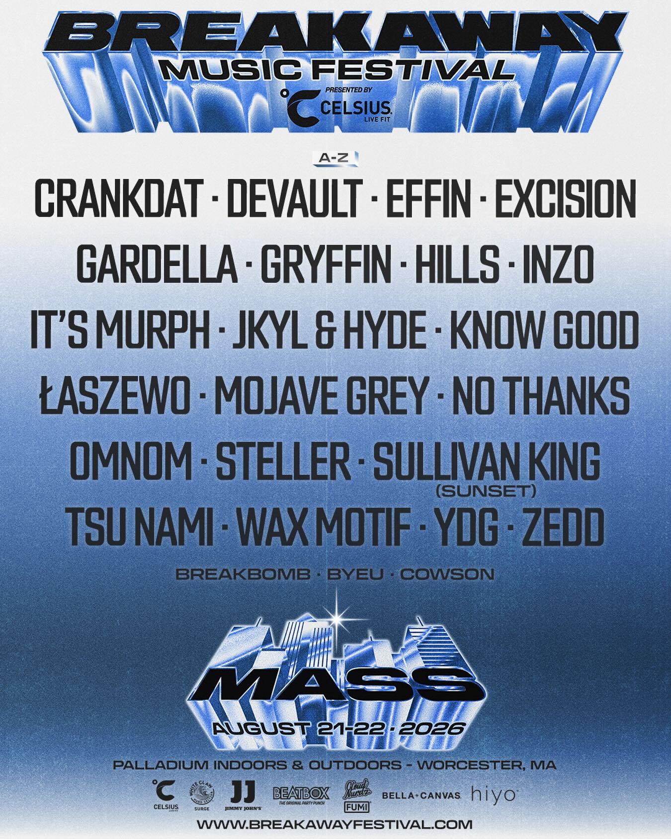 Breakaway Mass Festival has unveiled its 2026 lineup, confirming a return to Worcester, Massachusetts on 21st - 22nd August, 2026. Set across the Palladium Indoors & Outdoors, the event marks another major stop on Breakaway’s nationwide tour, bringing a high-energy electronic lineup back to New England.
