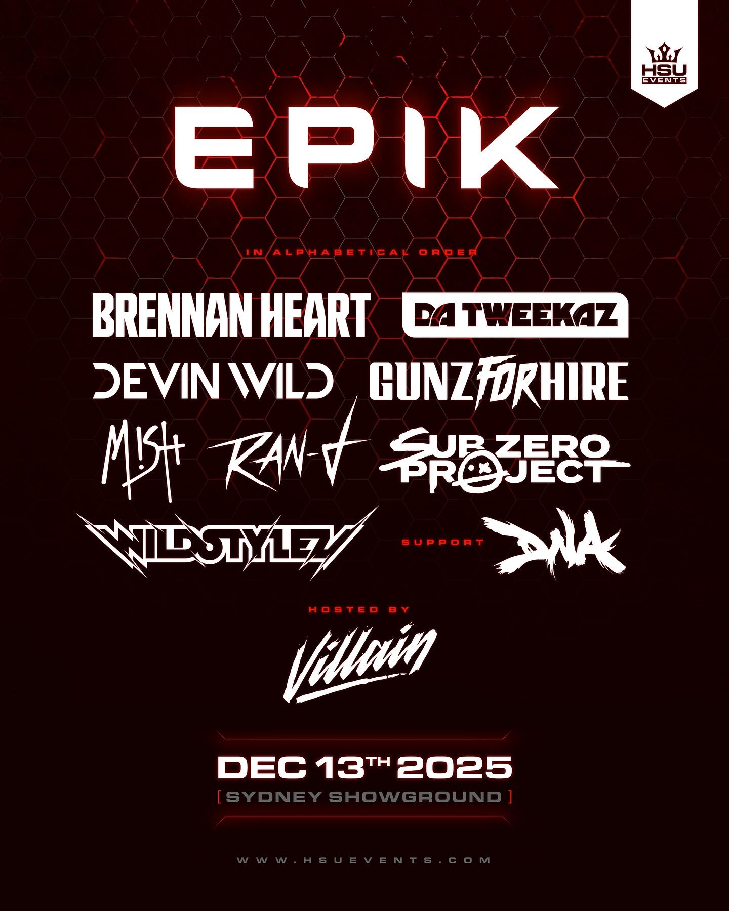 Backed by the production power of HSU Events, EPIK promises another unmissable day of relentless beats, custom-built stages and high-energy crowd moments. With such a massive lineup already locked in, December can't come soon enough for Australia’s hardstyle community.