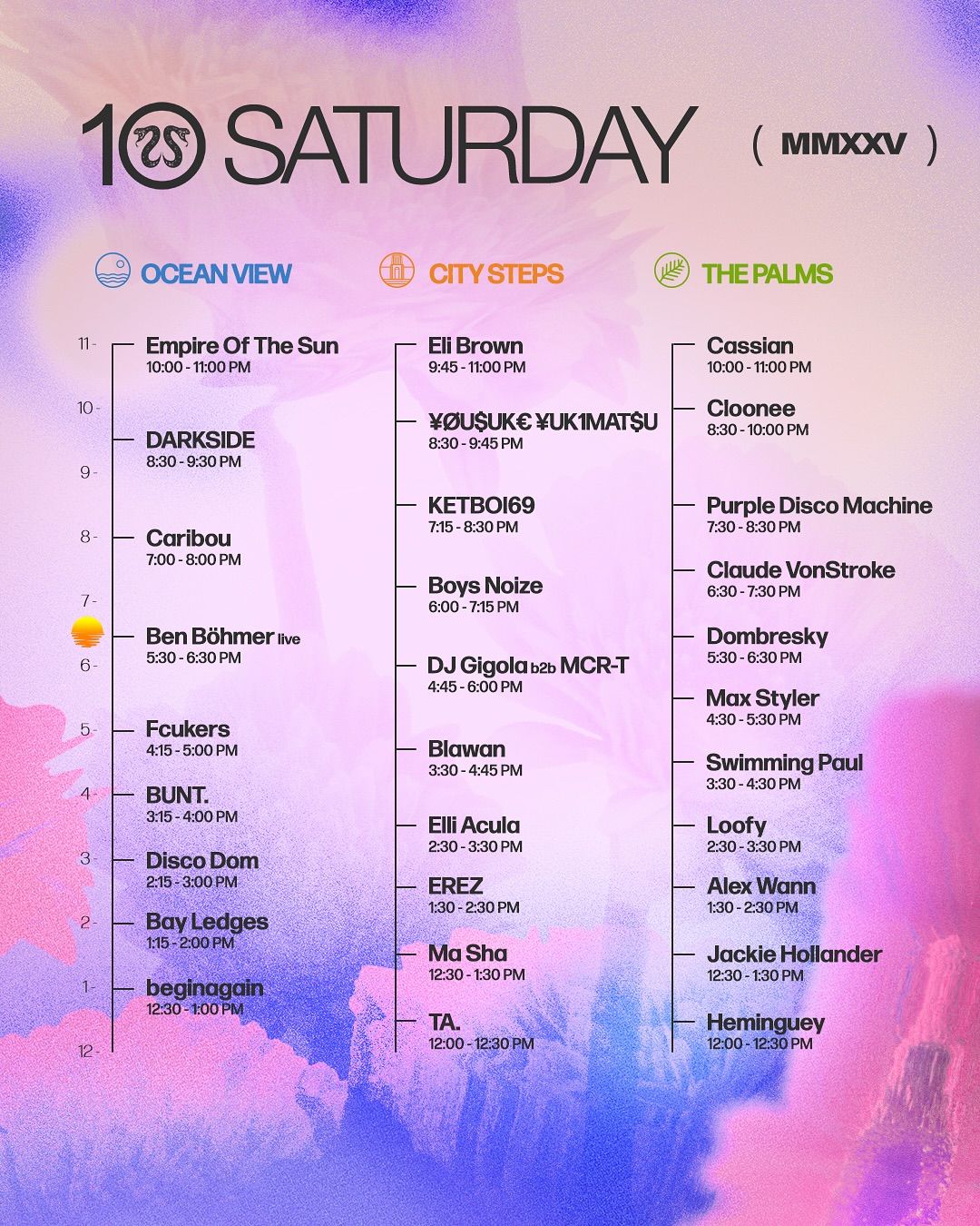 Newcomers and niche favourites also get their time to shine, including DJ Gigola B2B MCR-T, ¥ØU$UK€ ¥UK1MAT$U, Alex Wann, ChaseWest, and TA.. With CRSSD known for its sharp scheduling and seamless transitions between stages, fans can expect minimal clashes and optimal vibes across the palm-lined waterfront.