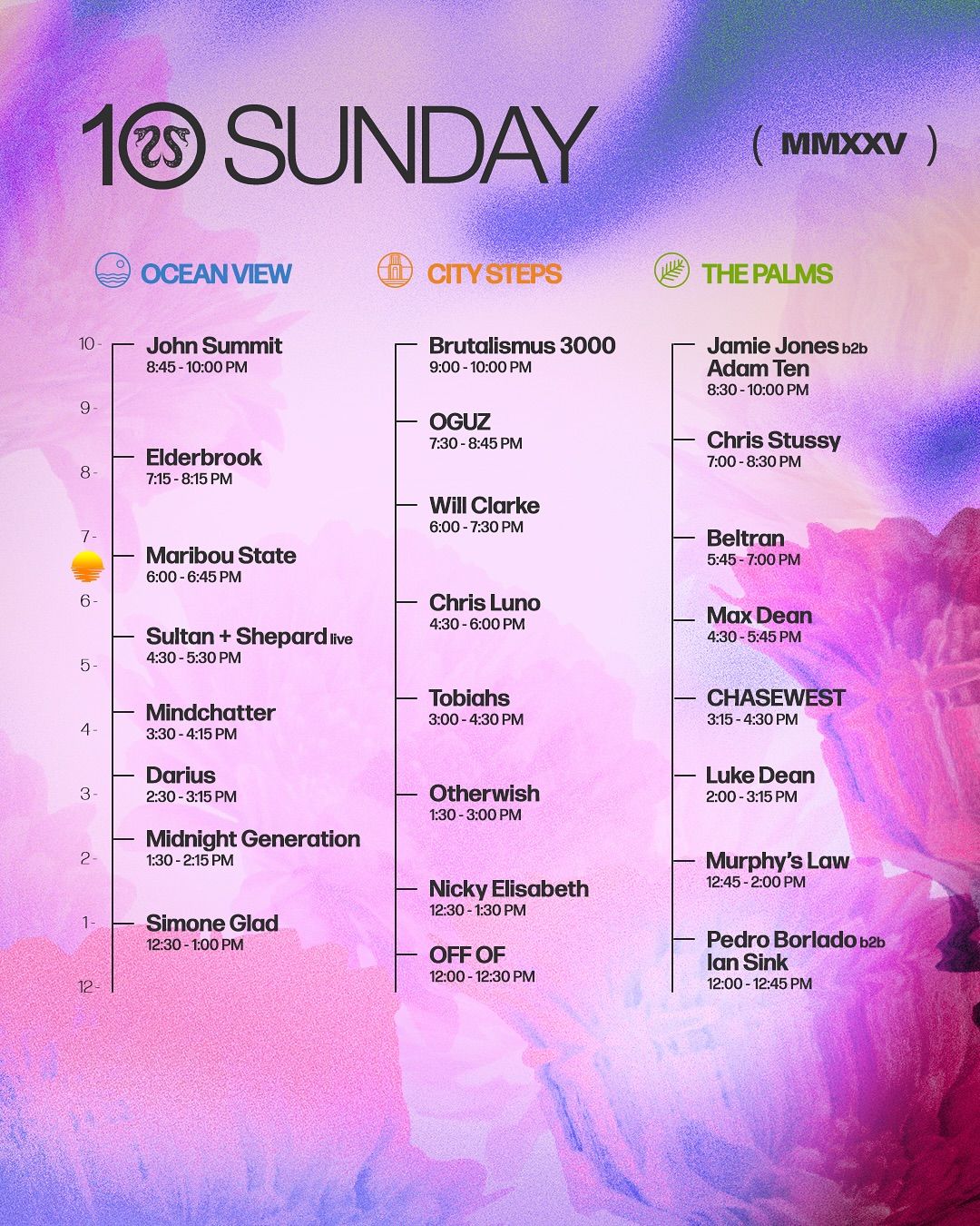 This year's lineup features an exciting mix of live and DJ performances from global icons and underground favourites. Highlights across the weekend include Ben Böhmer (Live), John Summit, Caribou, Purple Disco Machine, Brutalismus 3000, and the long-awaited Jamie Jones B2B Adam Ten. Also on deck are crowd favourites like Cloonee, Boys Noize, Elderbrook, and Claude VonStroke, promising a stacked schedule from start to finish.