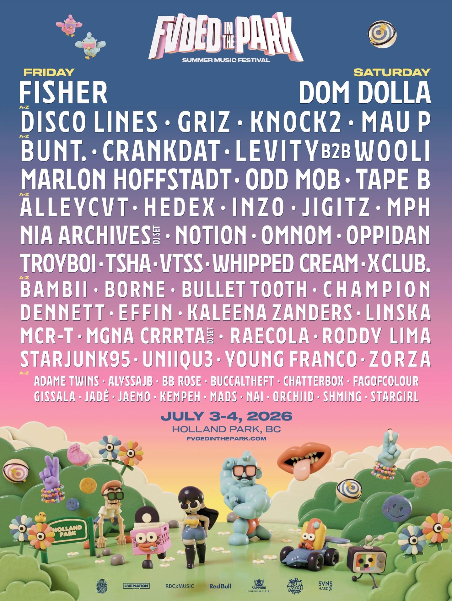 FVDED In The Park has unveiled its official 2026 lineup, returning to Surrey’s Holland Park on 3rd and 4th July with a high-energy mix of dance, bass, and hip-hop heavyweights. Leading the bill are two of Australia’s biggest global electronic exports — Fisher and Dom Dolla — who are set to headline Friday and Saturday night respectively, bringing an unmistakable Aussie presence to one of Canada’s most celebrated summer festivals.