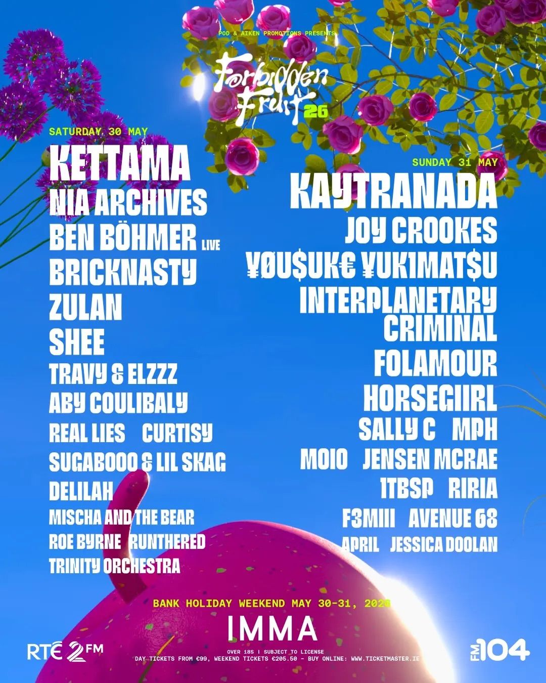 Day tickets for Forbidden Fruit 2026 go on sale at 9am on 6th March, 2026, following a presale available from 9am on 5th March, 2026. With its eclectic lineup and prime Dublin city location, the festival is once again shaping up to be one of Ireland’s biggest bank holiday weekend music events.