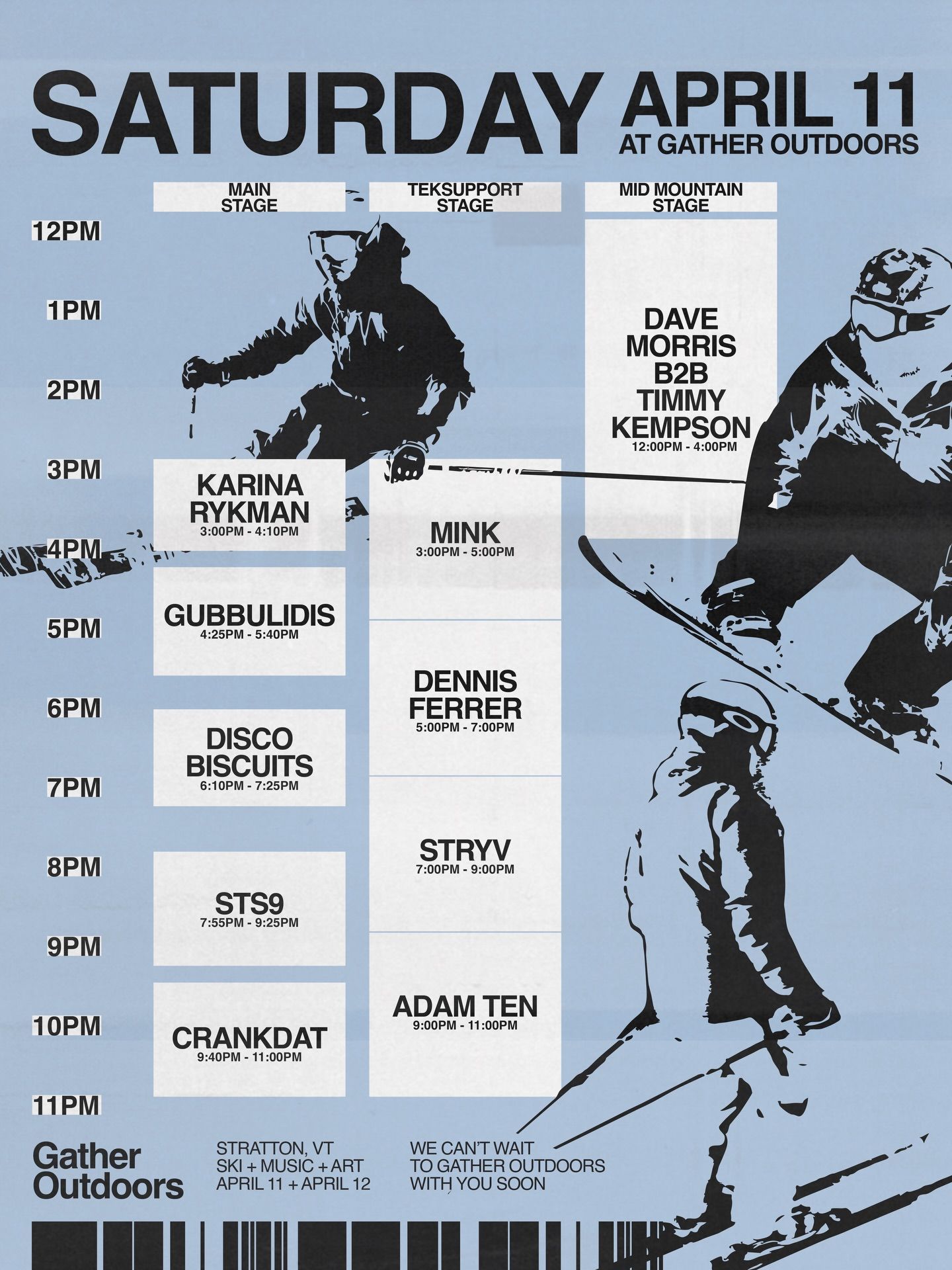 Gather Outdoors has unveiled its official 2026 set times, offering fans a first detailed look at how the debut edition will unfold across Stratton Mountain, Vermont from 11th - 12th April, 2026. With three stages spanning ski slopes and alpine settings, the schedule highlights the festival’s unique blend of electronic music, live acts and mountain culture.