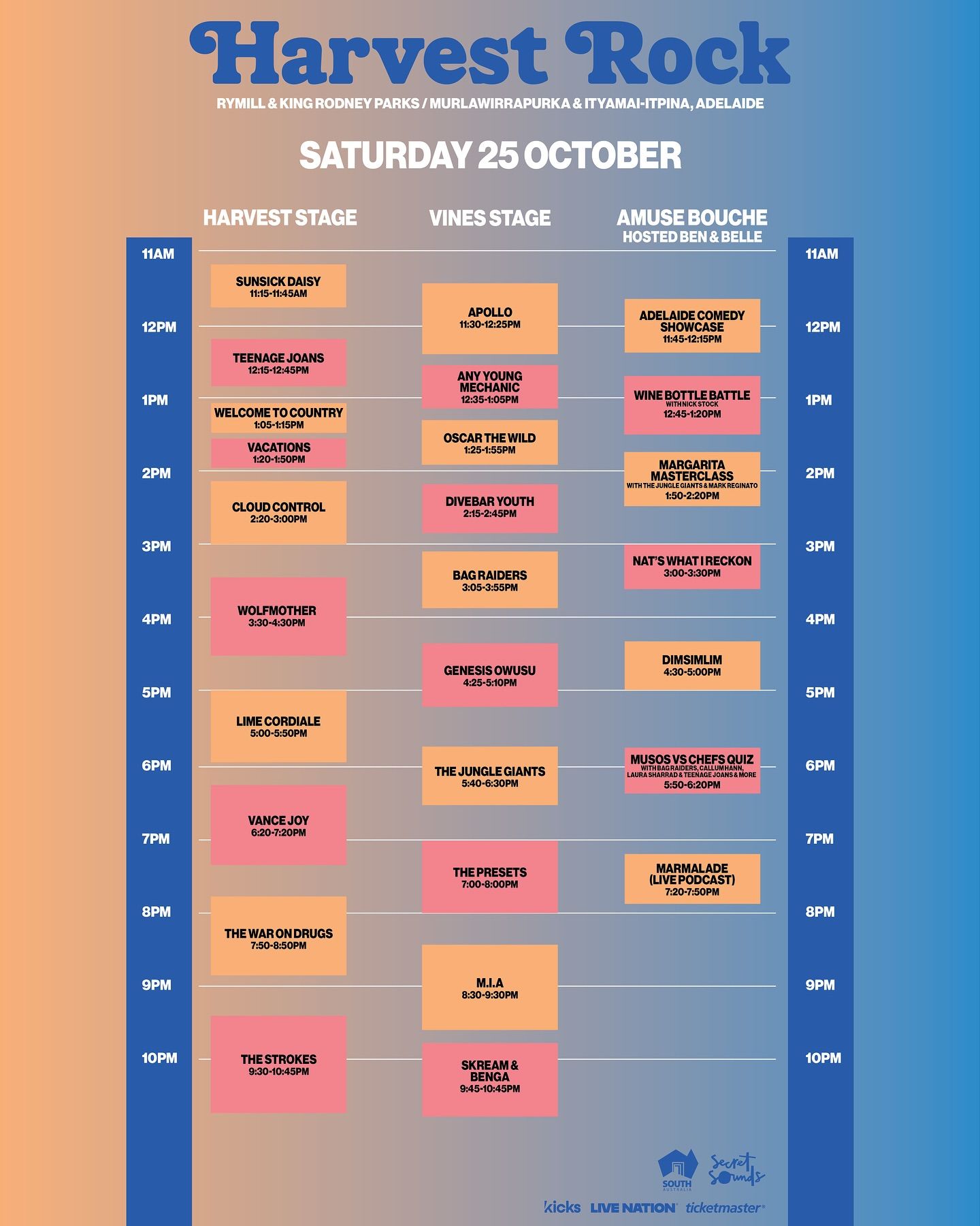 Topping the bill this year are The Strokes and The War On Drugs, both delivering exclusive Australian performances, alongside Jelly Roll, M.I.A., Vance Joy, and Lime Cordiale. Festivalgoers can also catch special sets from Wolfmother, performing their self-titled debut album in full, and Cloud Control, marking 15 years since their breakout LP. With over 40 artists on the lineup, clashes are inevitable — making early planning essential.
