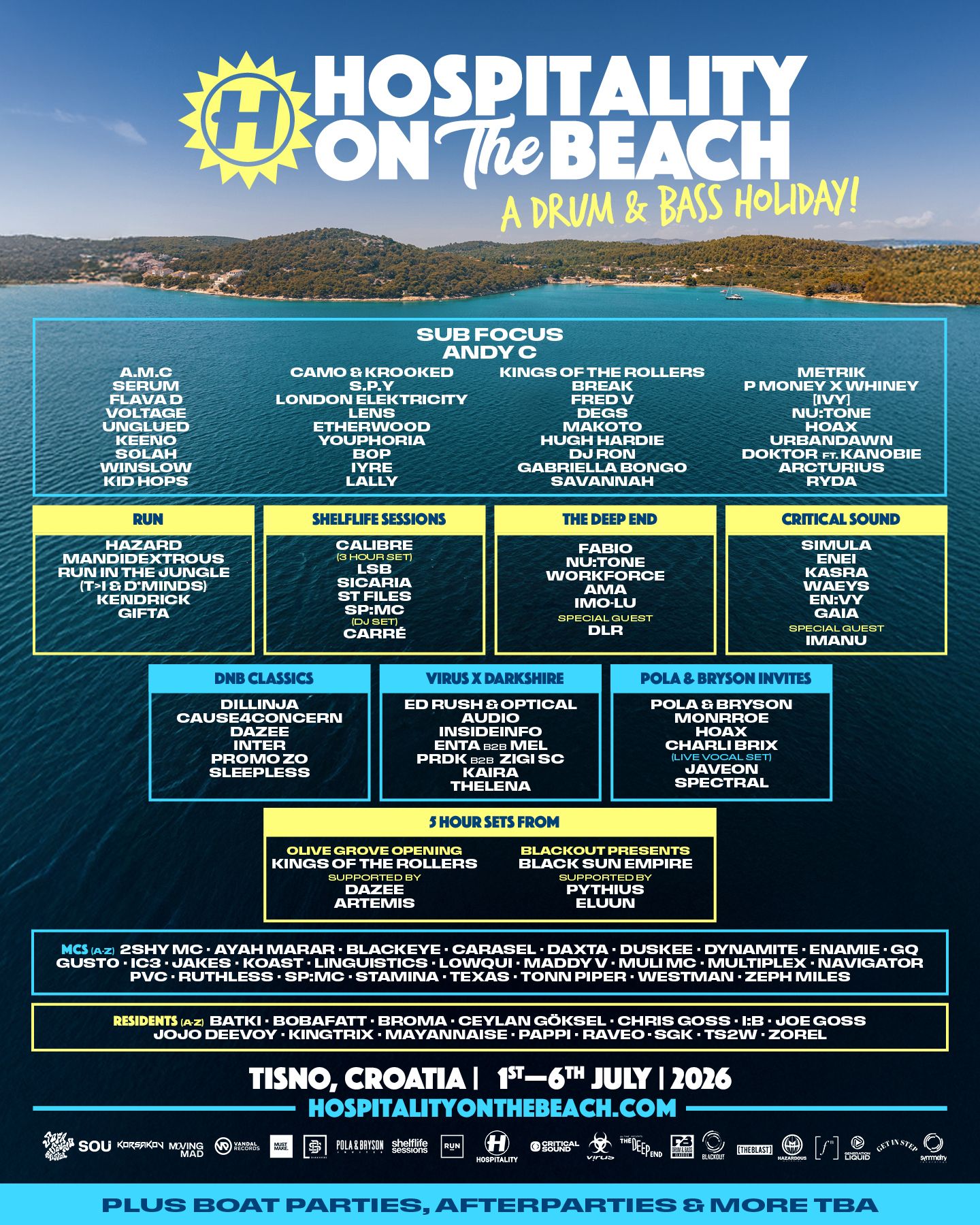 Hospitality On The Beach has unveiled its full 2026 lineup, locking in six days of sun-drenched drum & bass from 1st – 6th July, 2026 at The Garden Resort in Tisno, Croatia. This year marks a double celebration—the seventh edition of the festival and 30 years of Hospital Records, bringing together a legacy of sound, community, and movement on the Adriatic coast.