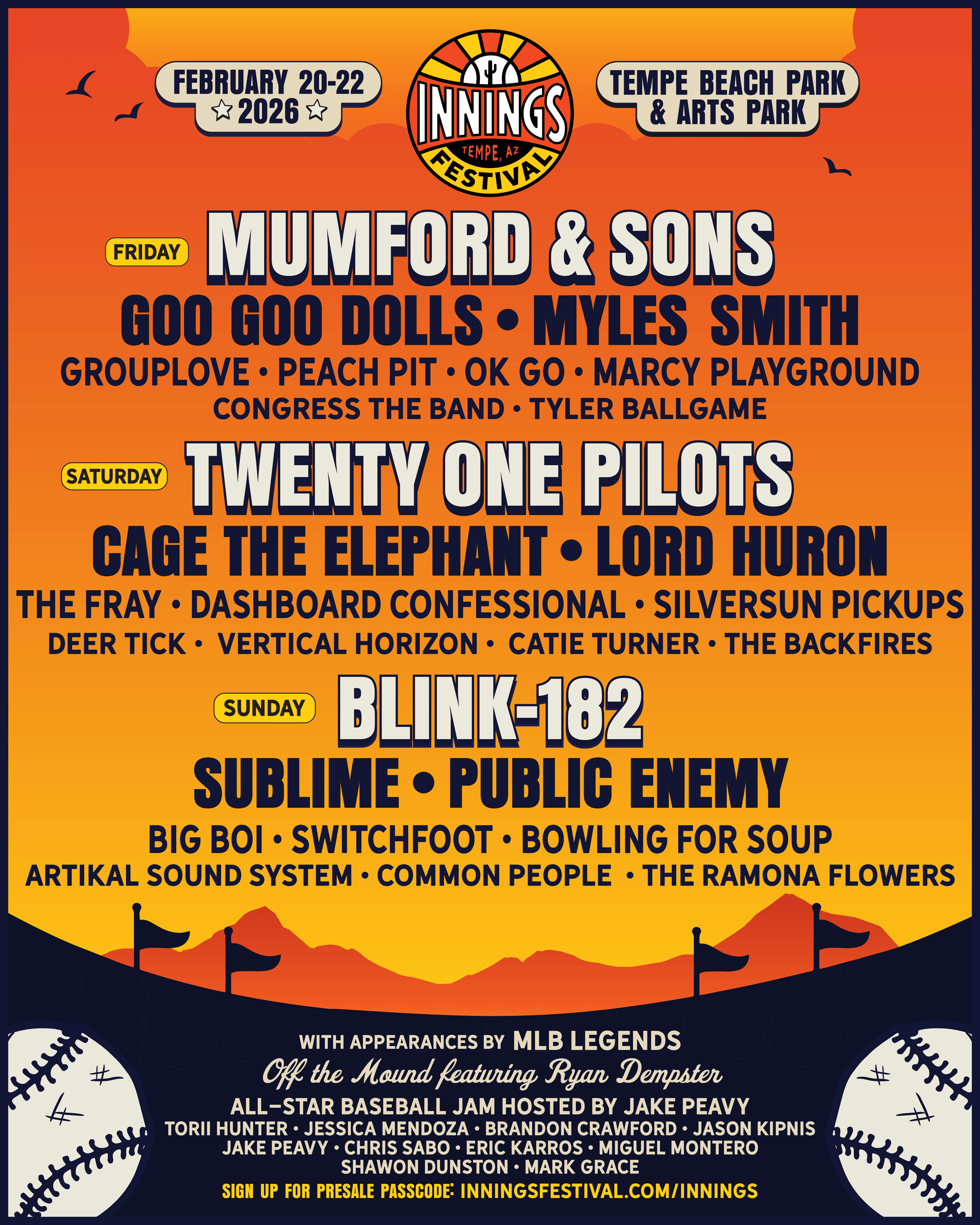 The Innings Festival will return to Tempe Beach Park & Arts Park in 2026, bringing three massive days of music to coincide with Arizona’s beloved spring training season. Running from Friday 20th February through Sunday 22nd February, the event continues its tradition of combining baseball culture with an eclectic mix of indie, rock and pop heavyweights.