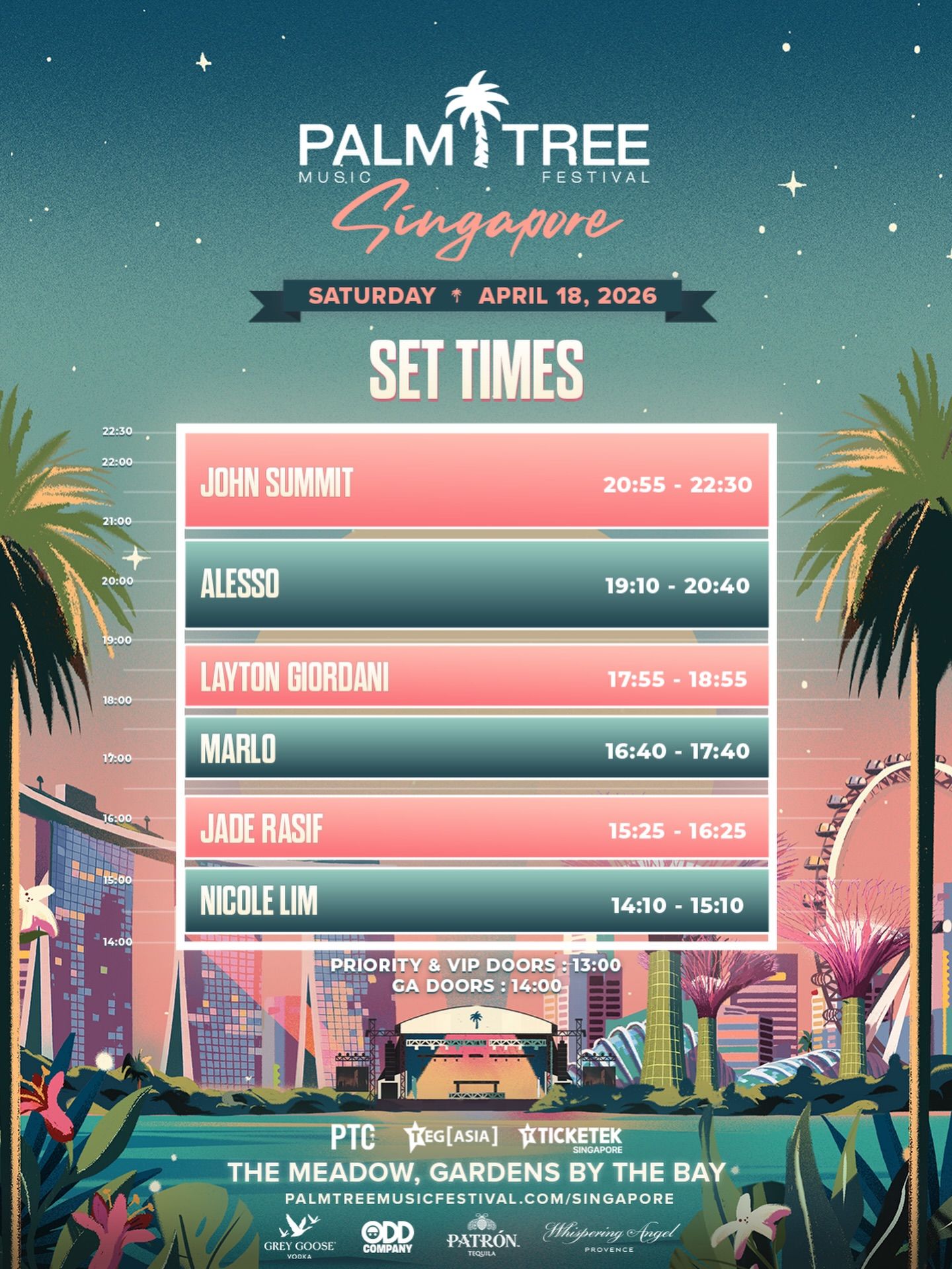 Palm Tree Music Festival has officially revealed the set times for its highly anticipated Singapore debut, set to take place on 18th April, 2026 at The Meadows, Gardens By The Bay. Marking the brand’s first edition in the region, the one-day event is set to deliver a polished, high-energy showcase of global electronic talent in one of Southeast Asia’s most iconic locations.