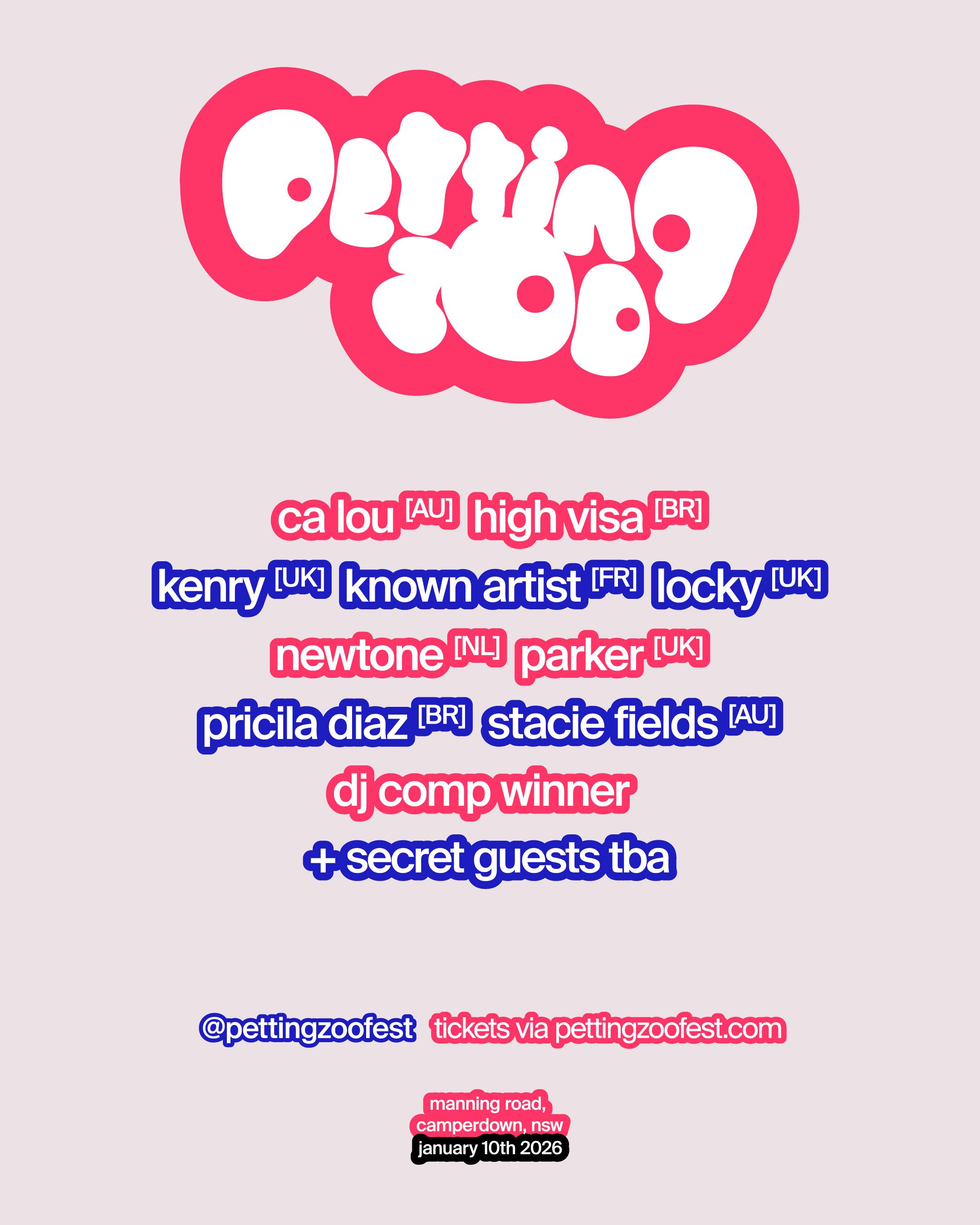 The festival promises a hyper-colour celebration of sound, transforming a university car park into a multi-stage playground curated by production designer Blake Moody. Petting Zoo will feature immersive art, unexpected performances, and a stacked house lineup blending emerging Australian artists with international names making their debut down under. Among the headliners are Locky (UK), Newtone (NL), Known Artist (FR), Pricila Diaz (BR), and Stacie Fields (AU), with secret guests still to be revealed.