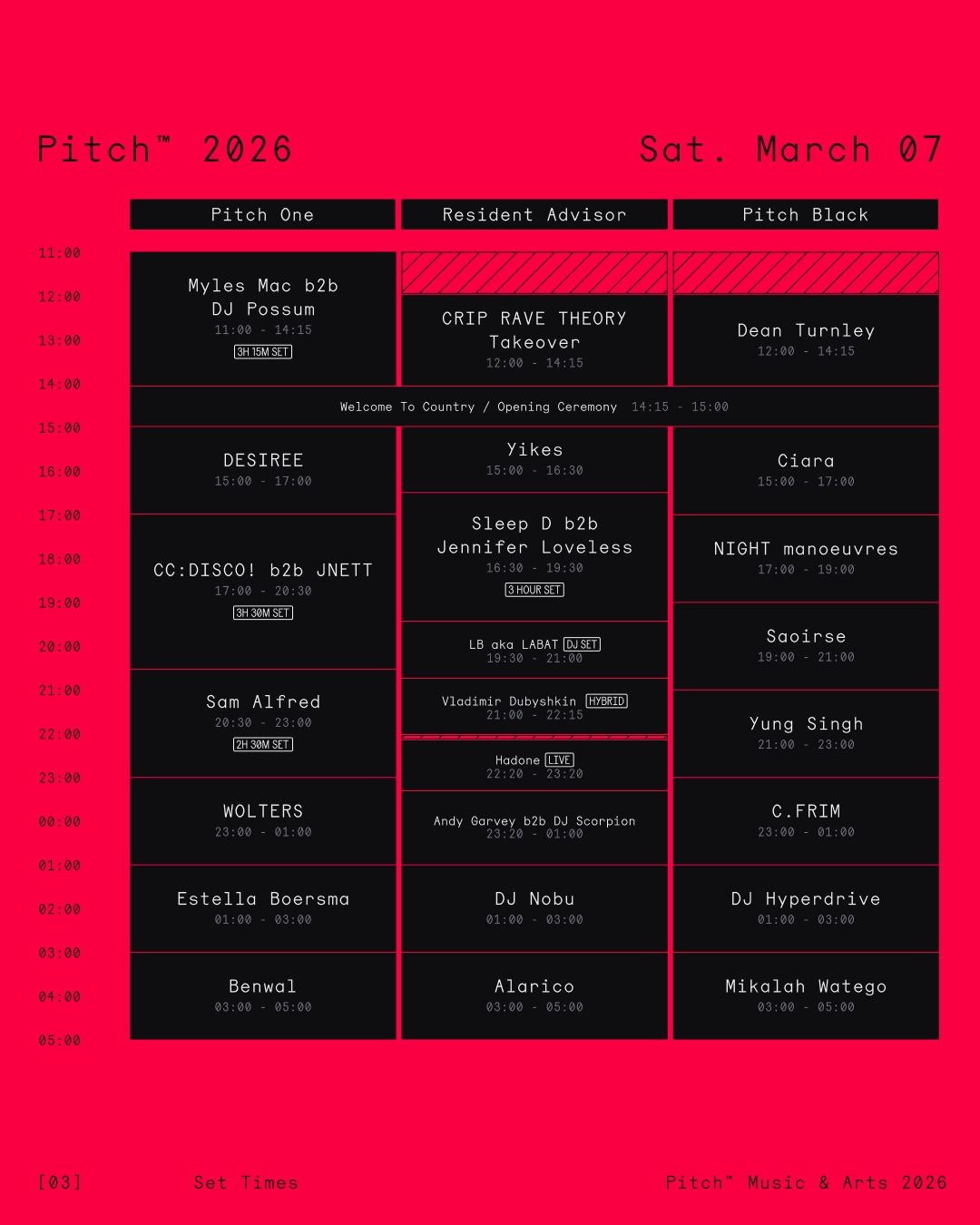 The schedule update comes after several artists were removed from the lineup in recent weeks. Charlotte de Witte and Sedef Adasi were forced to withdraw due to travel disruptions linked to the ongoing Middle East conflict, while Sama’ Abdulhadi was unable to attend after her visa was not approved. Odymel was also removed from the lineup following allegations that surfaced ahead of the festival. With the revised set times now confirmed, Pitch Music & Arts 2026 is set to begin in Moyston with an updated programme ready for the weekend.