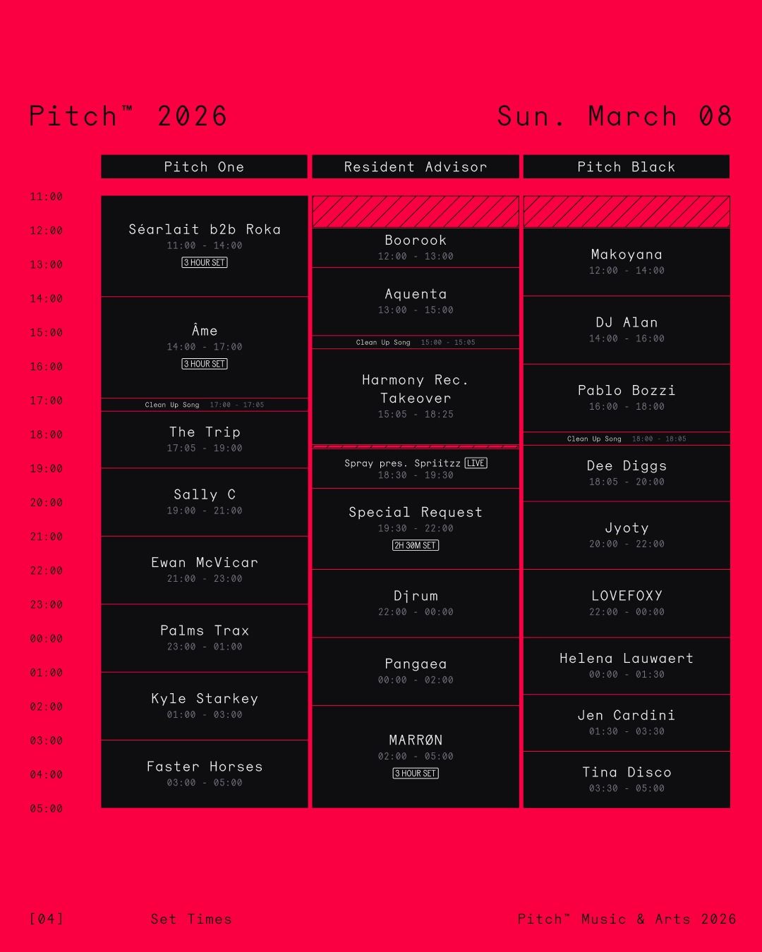 The updated timetable also includes several stage placement changes, with Kyle Starkey, WOLTERS, Soul Mass Transit System and Faster Horses now all scheduled to perform on Pitch One. Revised set times have been published across the Pitch One, Resident Advisor and Pitch Black stages, offering attendees a clearer view of the festival’s running order before gates open.