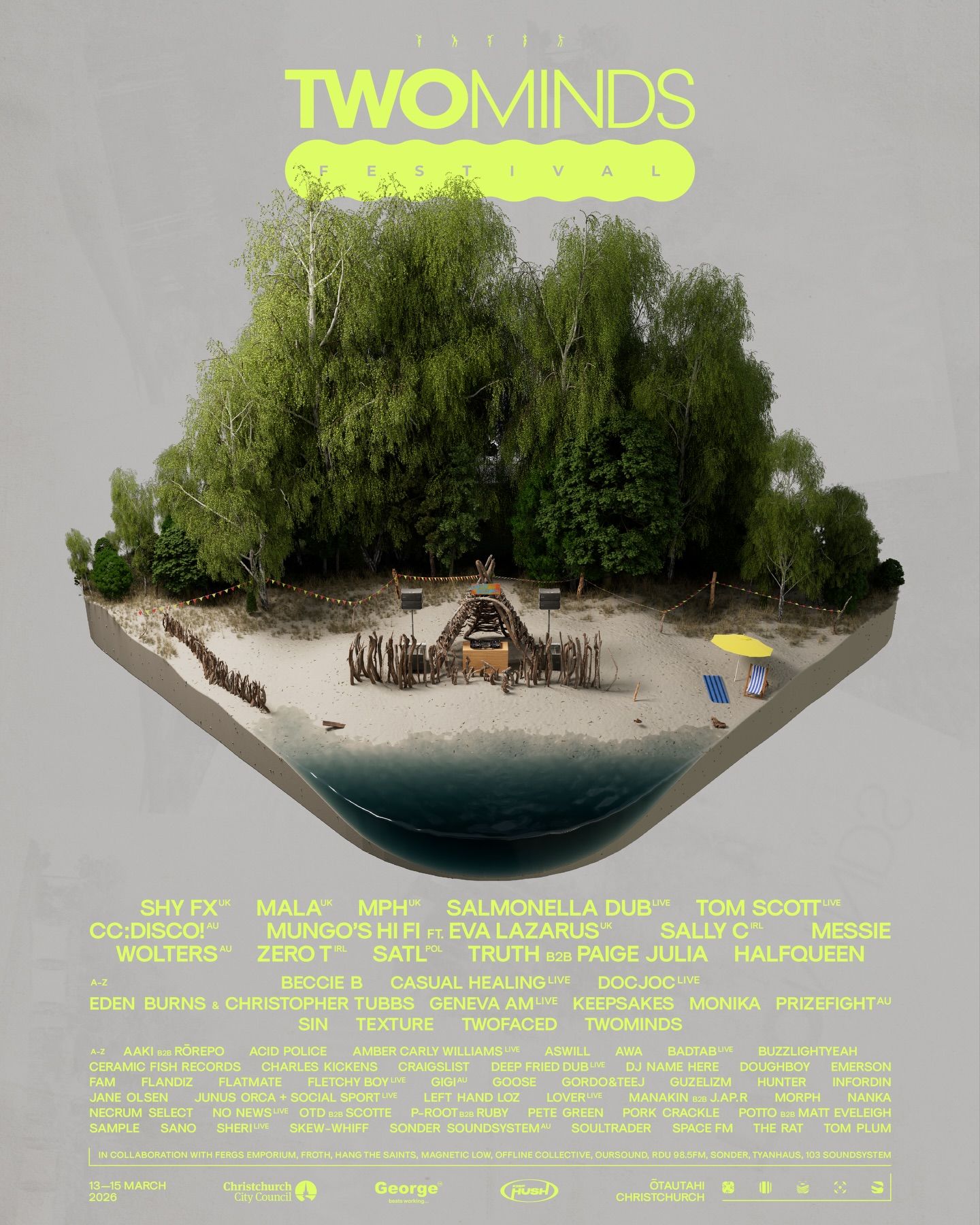 Twominds Festival has officially unveiled its 2026 lineup, delivering another expertly curated selection of international and local electronic music talent. Set to take place from 13th to 15th March at Spencer Beach Holiday Park in Ōtautahi/Christchurch, the beloved multi-day event will celebrate its fourth edition with its most ambitious lineup to date.
