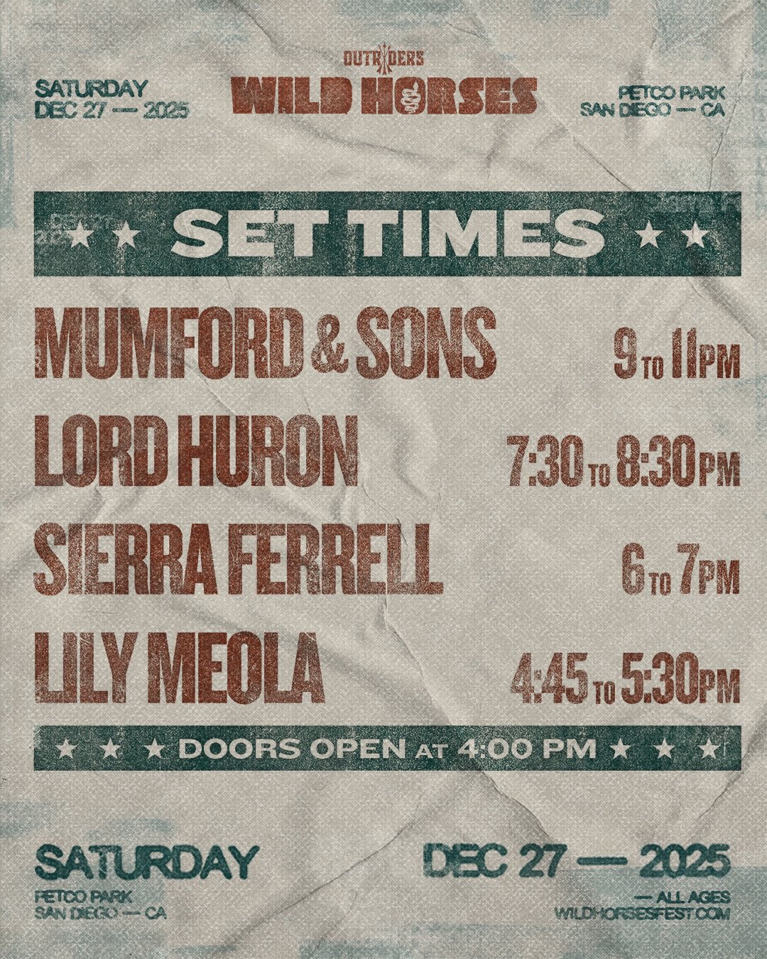 The countdown is on for the 2025 edition of Wild Horses Festival, with organisers unveiling the official set times ahead of the single-day event on Saturday 27th December at Petco Park in San Diego, California. This year’s bill features a genre-spanning mix of folk, Americana and indie rock, headlined by chart-topping UK favourites Mumford & Sons.